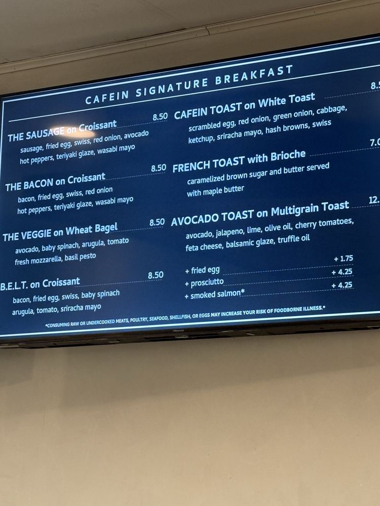 Cafein, located at 13924 Metrotech Dr Chantilly, VA 20151, is a bustling hotspot for quality coffee, tasty food, and a cozy atmosphere. With a diverse menu offering breakfast and brunch options like Avocado Toast, Bacon Egg and Cheese sandwiches, and Smoked Salmon Ball Salad, Cafein caters to a wide range of tastes. Customers rave about the grilled cheese and tomato soup, mushroom toast with a poached egg, and pumpkin custard French toast. The cafe's seasonal hot chocolate and BELT on white bread are also customer favorites. The staff is friendly and informative, the ambiance is relaxed, and the coffee is consistently good. Whether you're looking for a productive space to work or study or just a place to unwind with a delicious meal, Cafein is a solid choice in the Chantilly area.